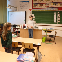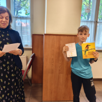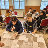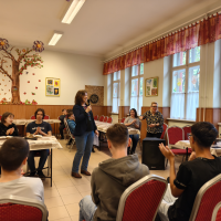 Másnap interaktív foglalkozáson vettek részt felsős évfolyamokból Karinthy Frigyes humoros, groteszk írásai alapján. Ezt követően a résztvevőkkel élő V E R S szót alkottunk, kis segítséggel.